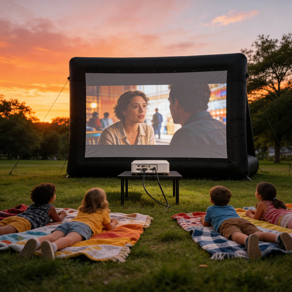 Imagine transforming your backyard into a magical outdoor theatre, where family and friends gather under the stars for unforgettable movie nights. With our Inflatable Cinema Screen, you can create these cherished moments effortlessly.
